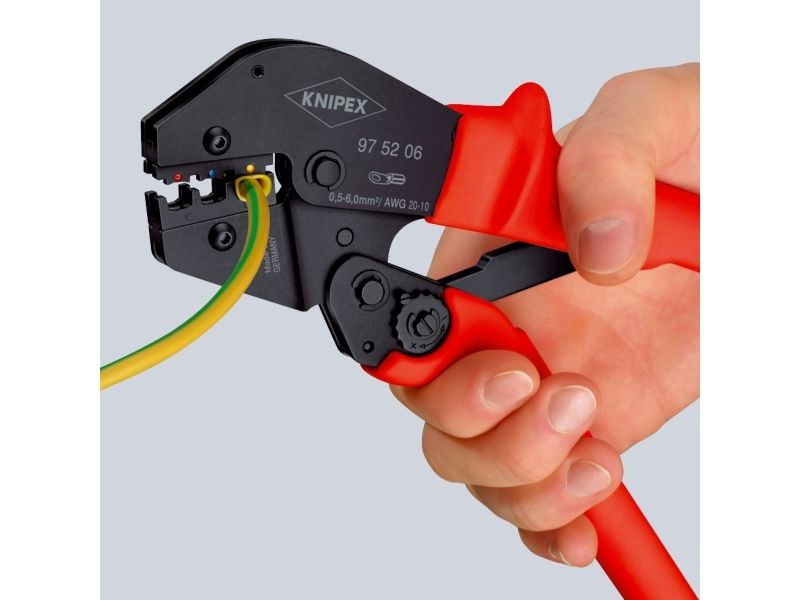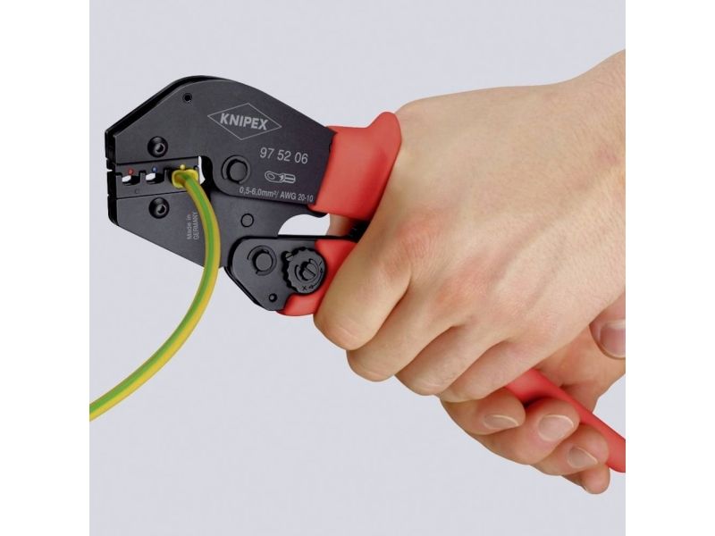 Konstant høj crimpkvalitet takket være præcisionsindsatser og tvangslås ( kan låses op)
