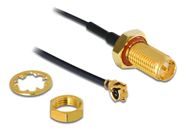 Antennkabeln från Delock används för att strömföra en antennsignal på insidan av en enhet. På grund av den lösa tätningsringen på grundplattan på RP-SMA säkerställer paneluttaget en stänksäker anslutning till enheten.