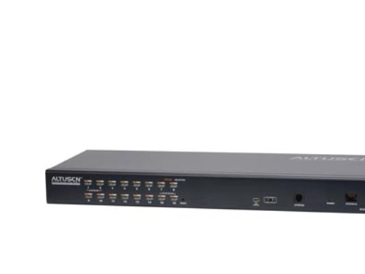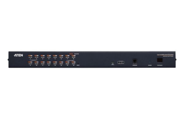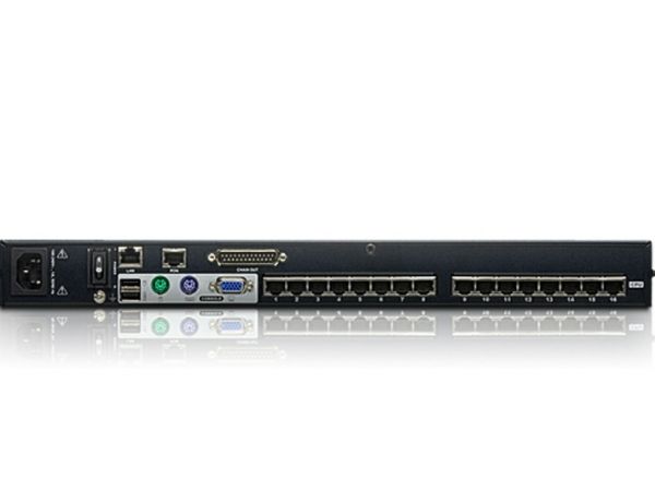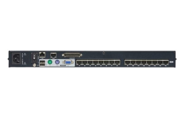 The KH1516Ai Cat 5 High-Density Over the NET KVM switch is a 16-port device in a 1U-high housing allowing local and remote operators to monitor and access the entire enterprise data center over the Internet using a web-based browser.