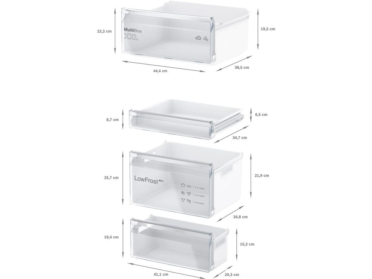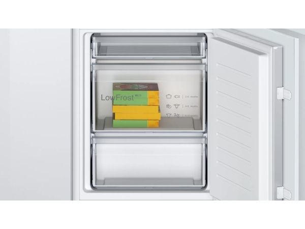 Bosch Serie 2 KIV865SE0. Total net capacity: 267 L. Door hinge: Right. Climate class: SN-ST, Noise level: 35 dB. Fridge net capacity: 183 L, Fridge interior light, Fridge number of shelves/baskets: 4, Number of vegetable drawers: 1. Freezer net capacity: 84 L, Freezing capacity: 4.2 kg/24h. Energy efficiency class: E, Annual energy consumption: 229 kWh. Product colour: White