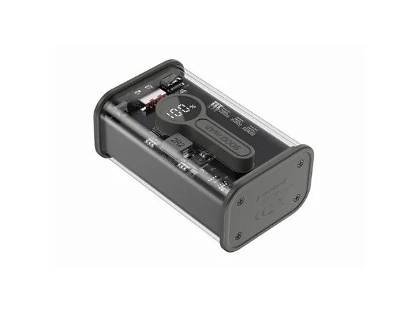 Gembird - Strømbank 2 x 21700 - 9000 mAh - 20 watt - 3 A - PD, QC 3.0 - 2 utgangskontakter (USB, USB-C) - svart, gjennomsiktig