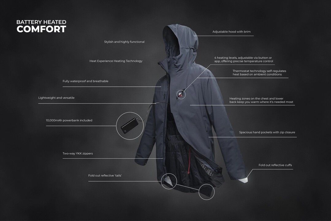 Du trenger ikke lenger velge mellom stil og komfort. Oslo Coat kan brukes på kontoret og kafeen, under pendling på sykkel, t-bane eller når du er på lekeplassen med barna. Og du trenger heller ikke legge til varme mellomlag på kalde dager; du trenger bare å slå på varmesystemet. Du kan velge boost-effekten når du venter på bussen på en kald dag, og deretter bytte til lav når den endelig kommer. Eller, hvis du foretrekker det, kan du bruke Heat Experience-appen for å stille inn ønsket temperatur og la systemet autoregulere. Og ikke glem at denne frakken også beskytter deg mot regn og snø med sitt vanntette og pustende stoff, lange snitt og romslige hette. De utfellbare refleksdetaljene gir deg ekstra sikkerhet på mørke morgener. Dette blir den eneste vinterfrakken du trenger—ingen grunn til å fylle skapet med ulike alternativer for forskjellig vær. Oslo Coat har deg dekket.