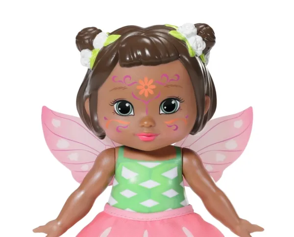 Denne lille feen ved navn Peach er kledd i et blomsterantrekk. Vingene hennes, som ser ut som kronblader, begynner å flagre når du berører magen hennes med tryllestaven . På det søte lille ansiktet hennes skjuler det seg et magisk trykk som bare kan sees når solen skinner.