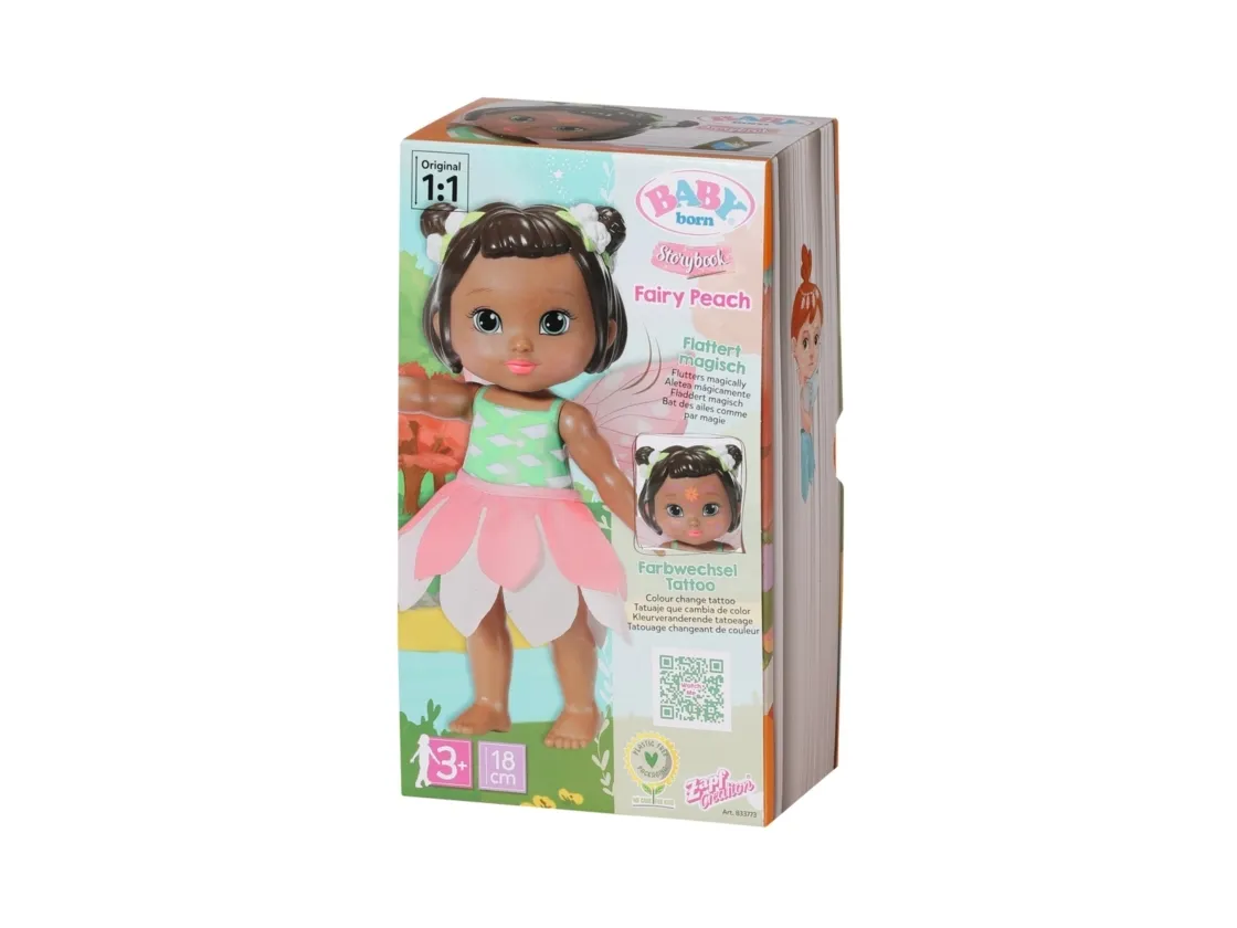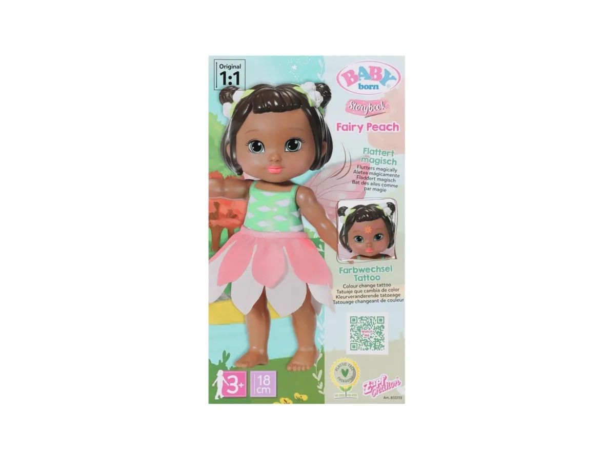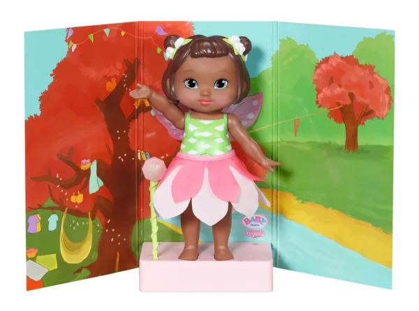 - BABY born Storybook fairy Peach 18 cm med tryllestav, scene, kulisser, base med LED-lys og bildebok