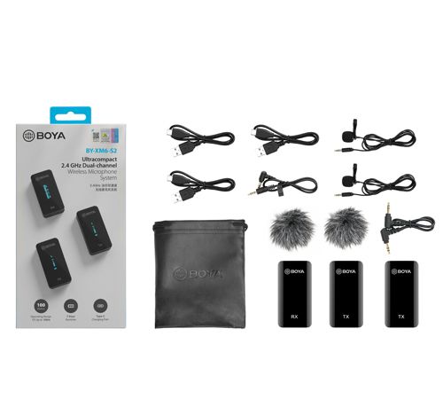 BOYA BY-XM6-systemene er utrolig lette, ultrakompakte og brukervennlige trådløse mikrofonsystemer for opptil 2 personer. Mikrofonen leverer eksepsjonell lyd i kringkastingskvalitet til speilreflekskameraer, speilløse kameraer og videokameraer, smarttelefoner, nettbrett, datamaskiner osv. Den er ideell for innholdsproduksjon, vlogging, mobiljournalistikk og mye mer.