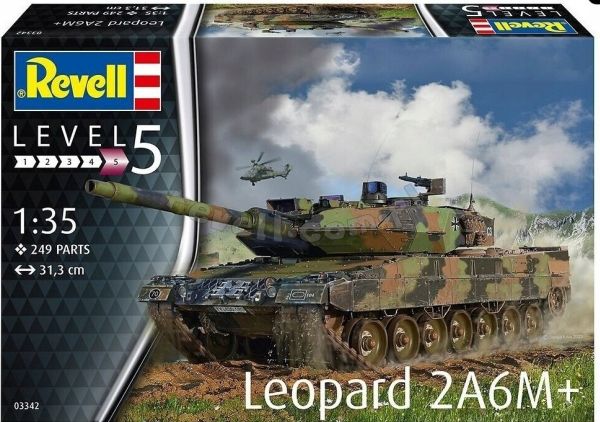 Leopard 2A6M+ i skala 1:35 er et meget detaljeret modelsæt, der giver selv meget erfarne modelbyggere mulighed for at bygge en utrolig nøjagtig kopi af hovedkampvognen. Med sine 250 dele er dette sæt et must-have for alle, der er interesseret i tyske kampvogne eller militærhistorie. 2A6M+-varianten er udstyret med en minebeskytter, afkoblet fører- og læsseskyttesæde og en modificeret flugtluge.