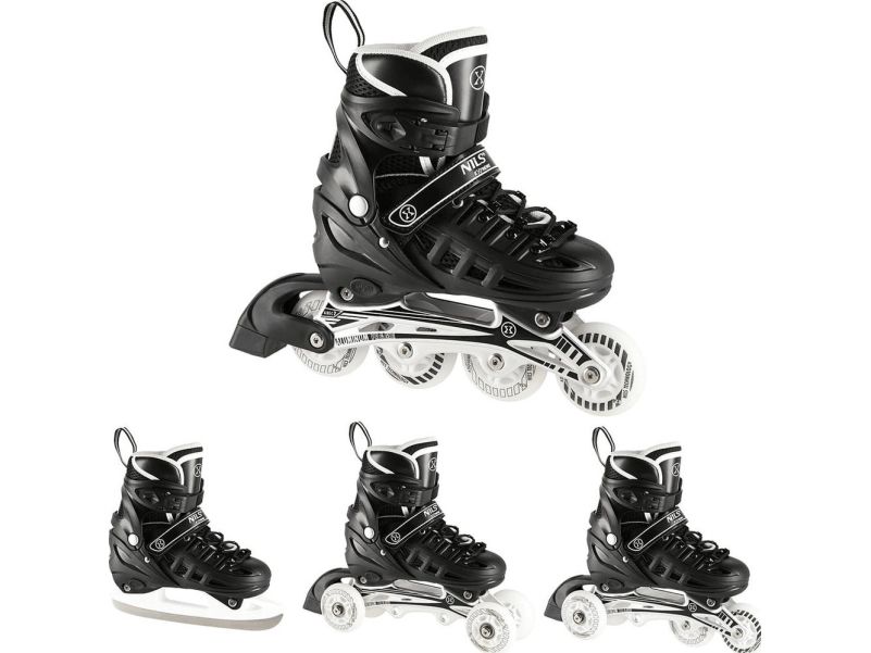 Nils Extreme NH10905 4in1 sort LED rulleskøyter STØRRELSE. M(35-38) INLINE SKØYTER MED DIMENSJONER. THE NILS EXTREME HOCKEY SKY