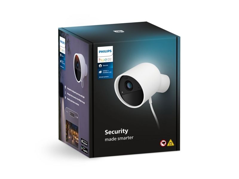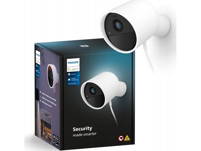 Philips Hue Secure-kameraet gir trygghet med sine pålitelige overvåkingsfunksjoner, designet for både innendørs og utendørs miljøer. Med en digital videoopptaksoppløsning på 1080p sikrer det klare og detaljerte opptak. Funksjoner som nattsyn, lydalarm og bevegelsesaktiverte varsler øker sikkerheten til alle døgnets tider. Den værbestandige designen, som er i samsvar med IP65-standarden, betyr at den tåler ulike værforhold.