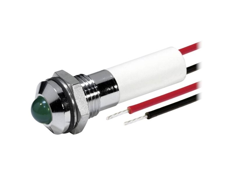 Led signallampe til indbygningsdiameter 8 mm - udvendig reflektor - med 600 mm tilslutningsadapter - 12VDC grøn