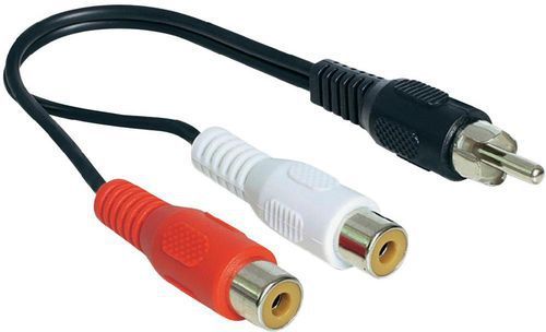 2 x stereo cinch-uttak (rød / hvit) > 1 x mono cinch-plugg