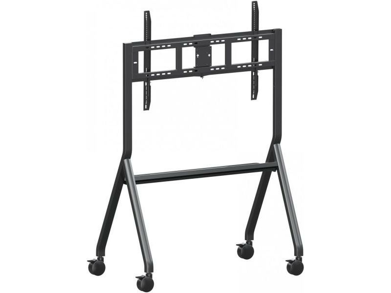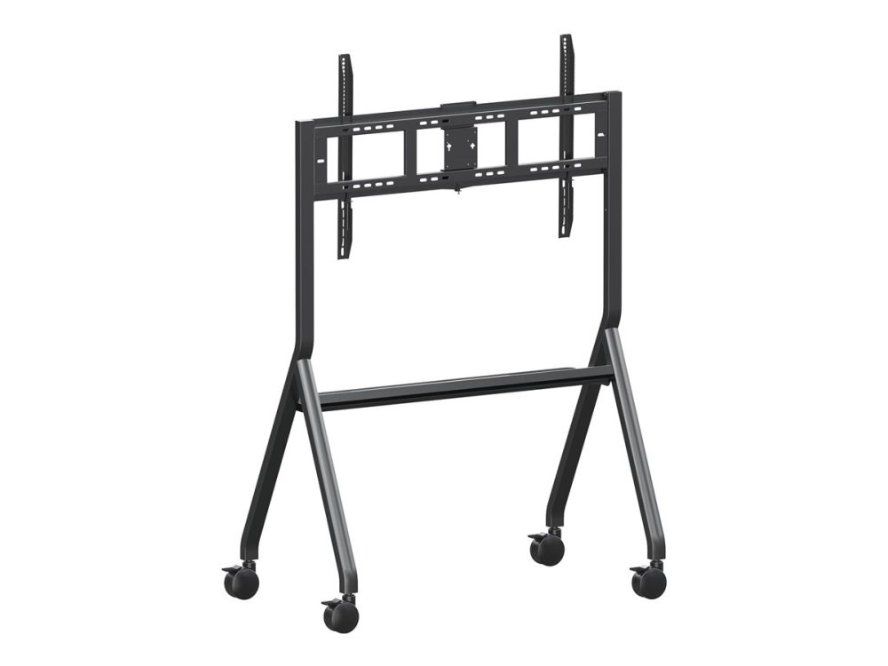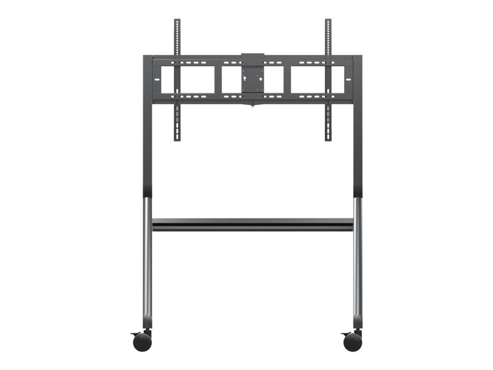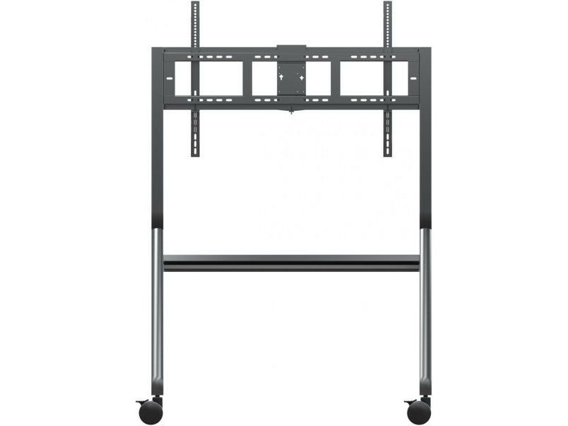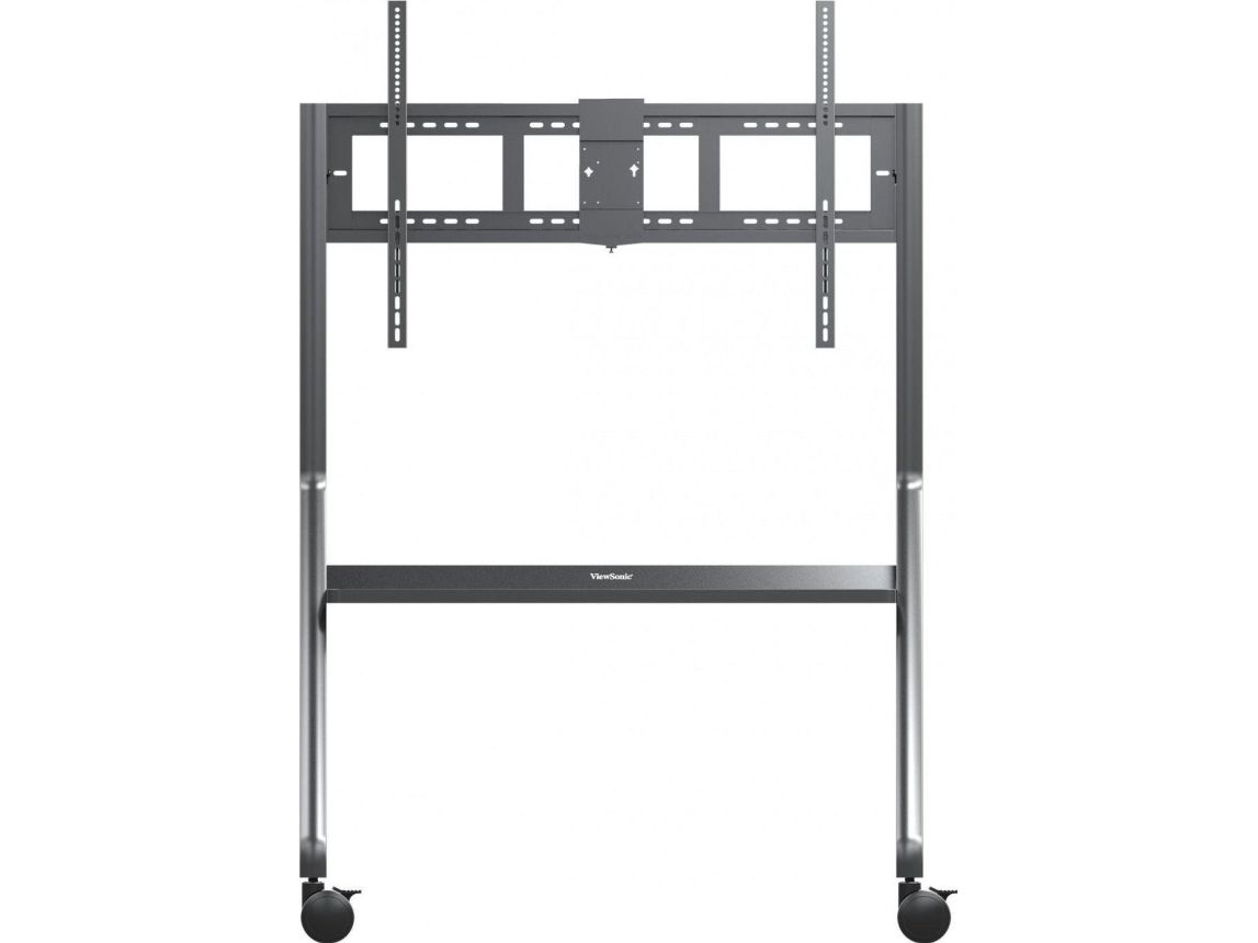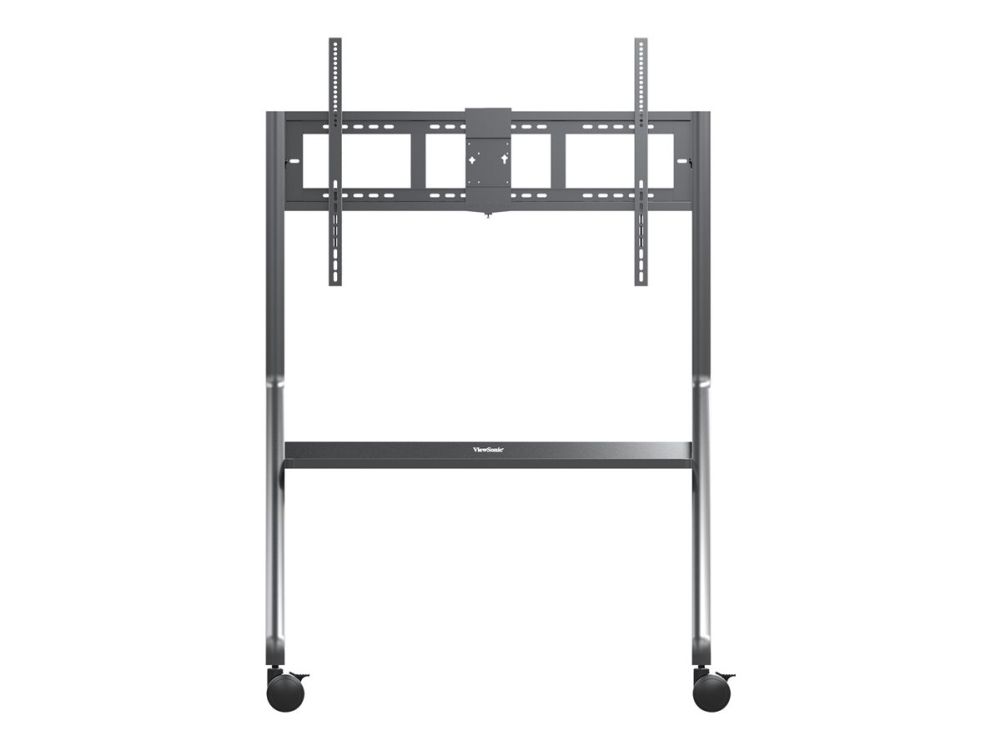 The ViewSonic VB-STND-009 trolley cart is designed for ViewBoard Interactive Flat Panel Displays ranging from 55" to 105" and securely accommodates any large format display weighing up to 120kg. Its streamlined, height-adjustable design and easy installation enable seamless integration into any space. Featuring 360° silent wheels with quick-release brakes, this cart offers effortless, stable, and secure mobility of presentation displays from one room to another.