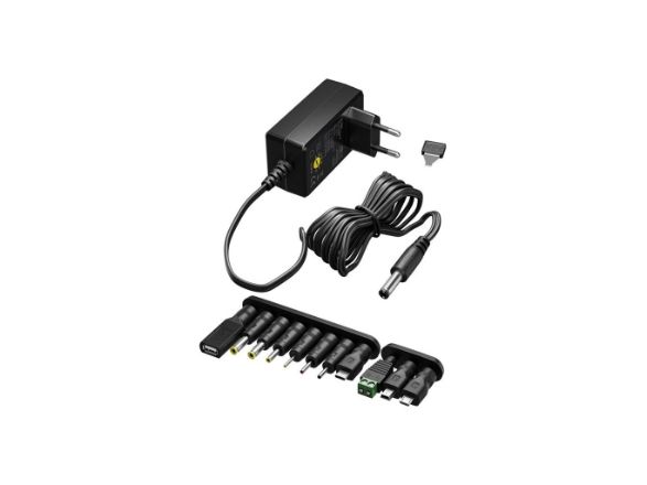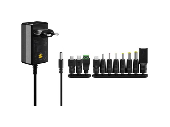 Strømforsyning med variabel spænding, perfekt som erstatningsstrømforsyning til elektroniske enheder som tv-boks, router, LED-strip, videokamera, digital billedramme, dartskive, babyalarm eller legetøj