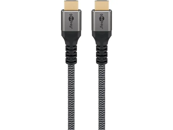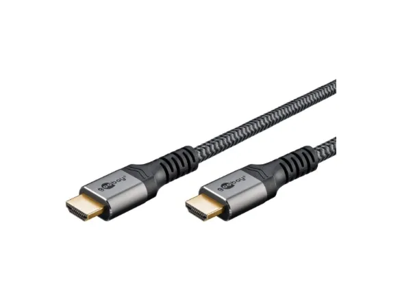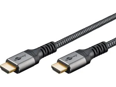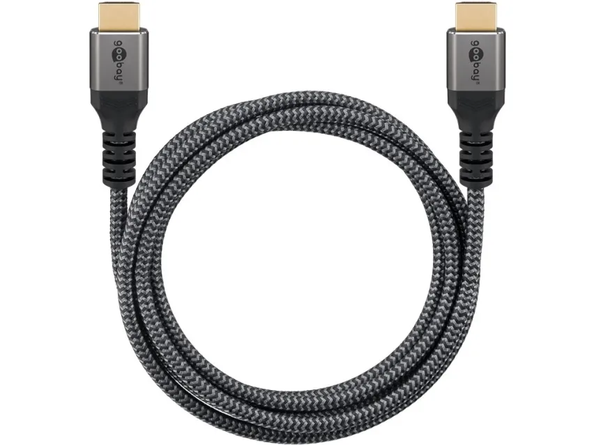 Den flettede tekstilkappe på Goobay 4K-kablet giver en behagelig fornemmelse og er skånsom mod følsomme overflader
