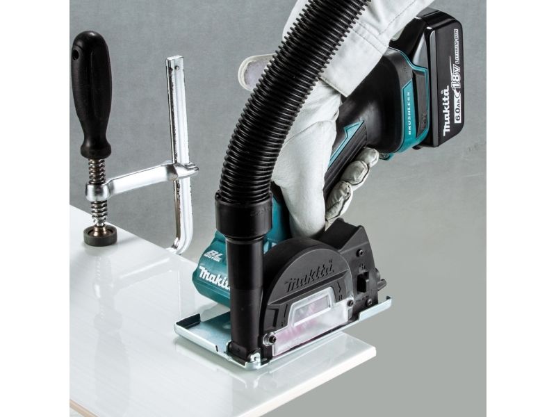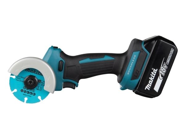 Ideel maskine til auto, VVS og flise arbejde. Den lille kompakte maskine med stor kraft muliggør små opgaver, såsom skæring af tynde plader, rør osv. Leveres med 1 stk.diamantskive, 1 stk.carbideskive, 1 stk.skæreskive & udsugningsskærm. Uden batteri og lader.