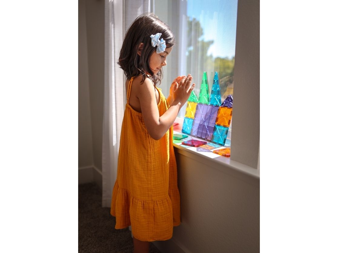 MAGNA-TILES® er konstrueret uden magnetiske poler, som gør let, selv for mindre børn at bygge.