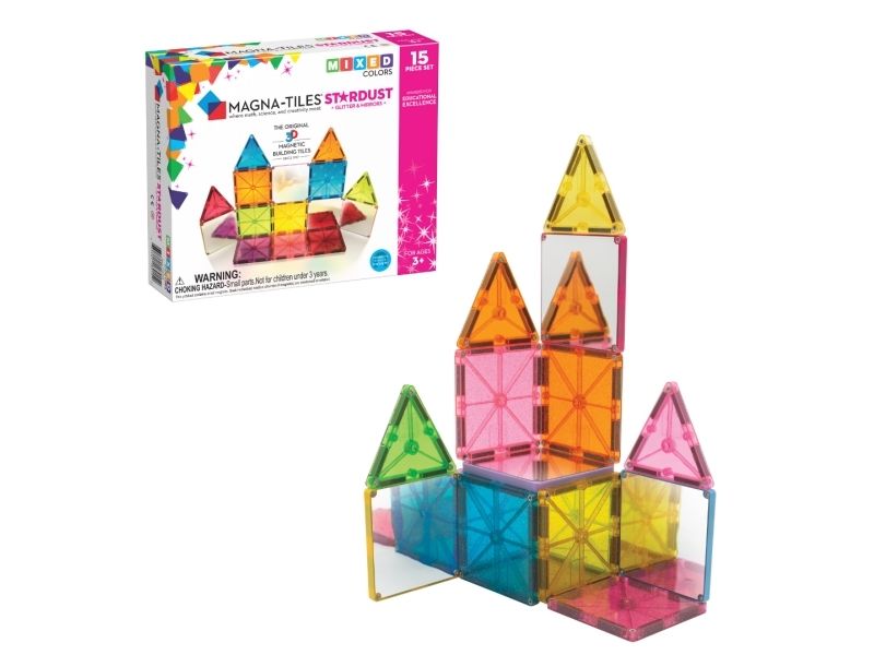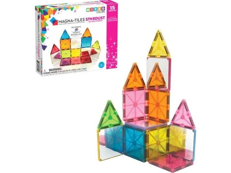 MAGNA-TILES® Stardust byggesæt med glimmer og spejlbrikker 15 stk. Tilsæt en glimtende twist til det kreative og læringsrige byggeri og leg. 3+år.