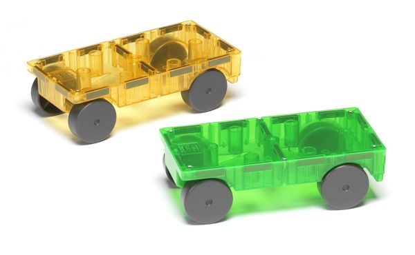 MAGNA-TILES® Biler, 2 stk. sæt! Vogn-sættet har et par magnetiske chassis på hjul og de kan leges med som de er!