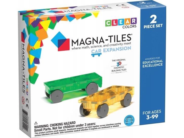 Imaginations are off to the races with MAGNA-TILES® Cars! Build cars, trucks, trains and more! The Cars 2-Piece Set comes with a pair of wheeled, magnetic chassis to build upon, promoting hours of open-ended play for children ages 3+. Now available in a rainbow of colors!