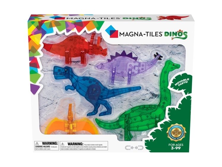 MAGNA-TILES® Dinos 5 stk! Magnetiske store dinosaurer med bevægelige dele! Skab sjove forhistoriske lege, eller leg med dinoerne sammen med dine andre MAGNA-TILES® sæt! Alder 3+ år.