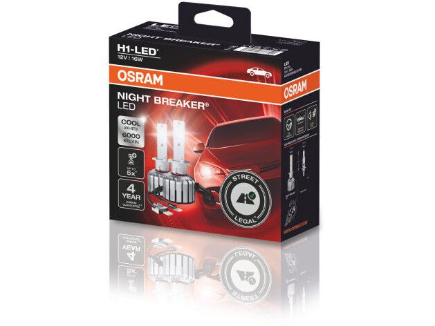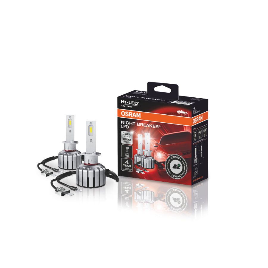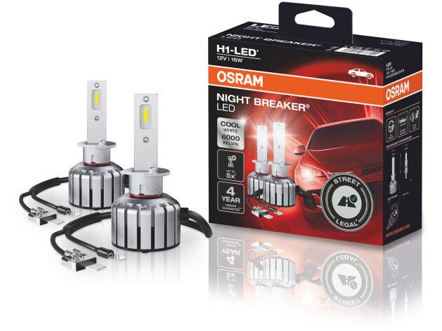 Med Osram Night Breaker LED H1 kan du nu opgradere funktionen af dine fjern- og nærlys i dit køretøj til den nyeste LED-teknologi til brug på vejene. Disse LED-udskiftningslamper er velegnede som erstatning for konventionelle H1-lamper og sokler.