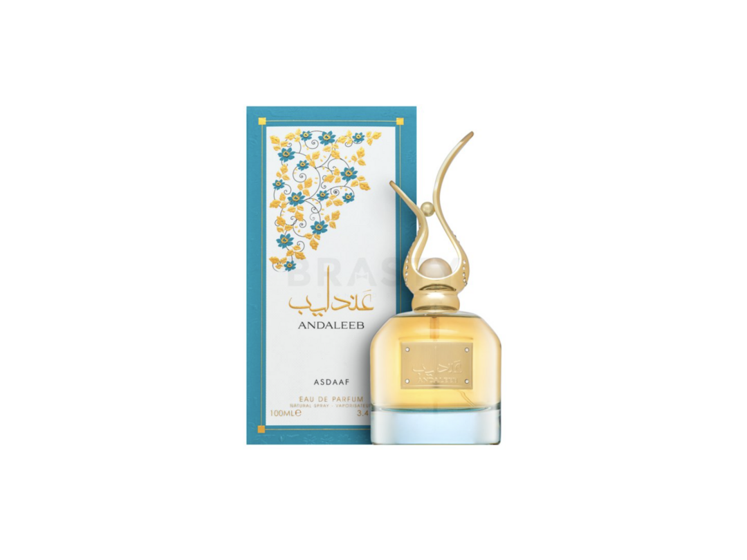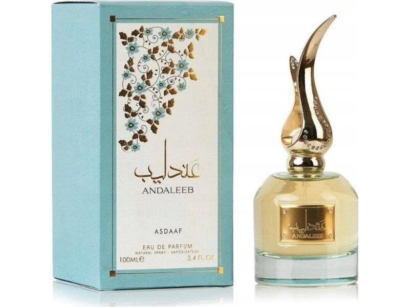 Parfume Andaleeb Asdaaf Eau de Parfum fra Lattafa Perfumes har en cremet, blomster-frugtagtig sammensætning fuld af raffinement. Topnoten åbner frugtig og saftig med noter af appelsin, mandarin og bergamot. Jasmin og roser fylder blomsterhjertenoten. Patchouli, sandeltræ, vetiver og moskus i grundnoten danner den perfekte, afsluttende ramme.