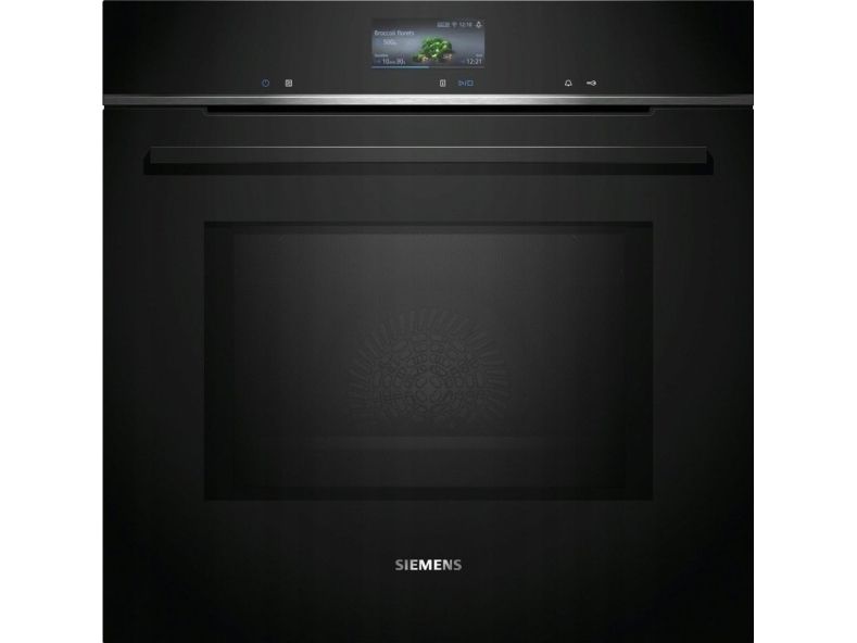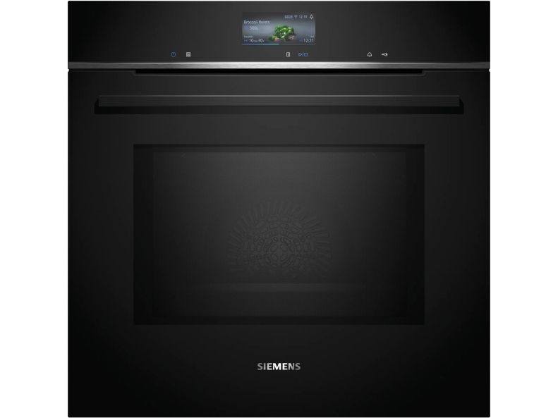 Siemens iQ700 HM776GKB1. Oven size: Medium, Oven type: Electric, Total oven(s) interior capacity: 67 L. Appliance placement: Built-in, Product colour: Black, Control type: Touch. Clock type: Electronic, Timer type: Digital. Connected load: 3600 W, AC input voltage: 220-240 V, AC input frequency: 50-60 Hz. Width: 594 mm, Depth: 548 mm, Height: 595 mm