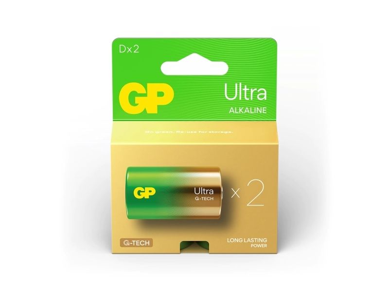 GP Batteries 03013AUETA-B2, Engangsbatteri, D, Alkalinsk, 1,5 V, 2 stykker, Gull, Grønn