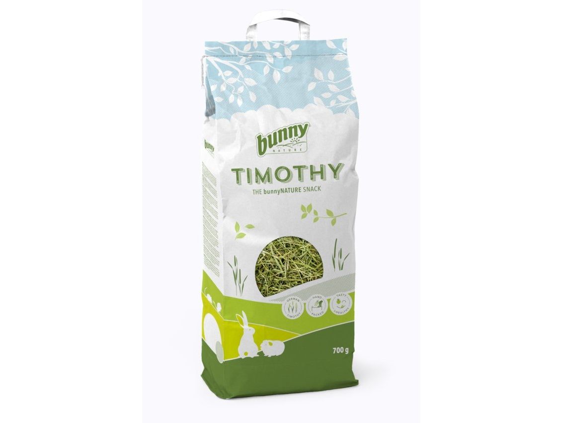Det vidunderlige Timothy hø fra moder natur til kaniner og gnavere Det tørrede hø er en vidunderlig gave fra moder jords natur til dit kæledyr. Bunny Nature Timothy Hø er skånsomt behandlet i alle stadier af processen og har mange positive egenskaber for kaniner og gnavere. Med den grove struktur sikrer Timothy-høet en naturlig og ensartet slid på tænderne på grund af den lange tyggetid og stimulerer samtidig den naturlige tarmflora hos dit kæledyr. Især bemærkelsesværdigt er det optimale indhold af calcium og phosphor, som er positivt for blæren. Timothy-hø er derfor ideelt som struktureret hø til dyr på en calciumbegrænset kost. Bunny Nature tilbyder meget høj kvalitet Timothy-hø, der er plantet og høstet i Tyskland, behandlet med omhu og håndpakket. Vægt: 700 g.