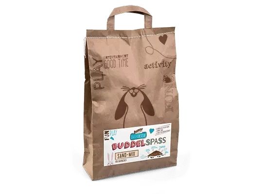 Den ekstraordinært bløde sandblanding fremmer naturlig adfærd, især hos kaniner. Sandet er behagelig for poterne og er perfekt til at holde sig kølig, fx om sommeren. Hæld sandblandingen i en gravningskasse, og så er der god aktivering til dit kæledyr. Hvis sandblandingen tørrer lidt ud, kan den genfugtes simpelthen med vand ved hjælp af en sprøjteflaske. Sandblandingen bliver endnu mere stabil, hvilket giver endnu mere grav og leg. Fjern dagligt snavs fra sandblandingen. Vægt: 9,7 kg. Du kan også købe den tilhørende sandkasse fra Bunny Nature her >