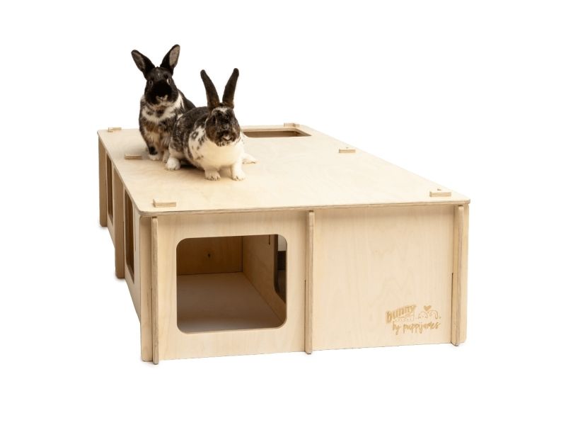 Nu kan labyrintsjov endelig begynde! Saml det interaktive labyrint-hus på en nem og overskuelig måde, og de nysgerrige kaniner kan nyde at udforske deres nye lege-miljø i deres hjem. Her kan de hoppe, klatre, lege, løbe gennem tunneler, gemme sig og have timevis af sjov.