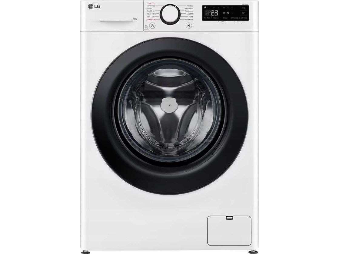 The LG Serie R5 F2WR508SWW washing machine combines efficiency with advanced technology for an exceptional laundry experience. With a loading capacity of 8 kg, this front-loading machine offers a variety of wash programs, including Eco 40-60, AllergyCare, and TurboWash 39, catering to diverse fabric types and cleaning needs. The added Steam technology helps to reduce wrinkles and sanitizes clothes, while the AI DD program optimizes settings for improved washing performance.