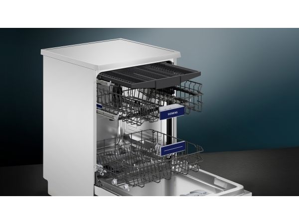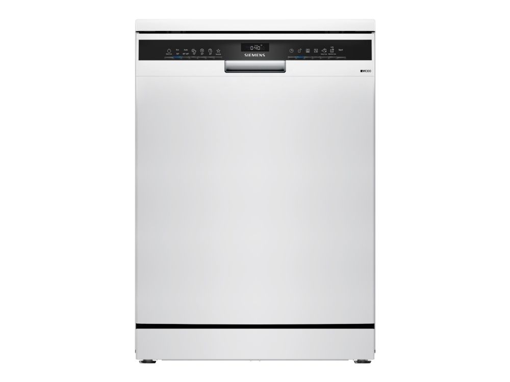 The Siemens iQ300 SN23EW03ME brings performance to the kitchen with its efficient cleaning capabilities and thoughtful design. This freestanding dishwasher features six programs, including Eco for energy-saving cycles, and specialized options like intensive 70°C and a half load setting to cater to different washing needs. With a spacious stainless-steel tub and a rated capacity of 14 place settings, it accommodates various dish sizes effortlessly. Equipped with features like the hydroSensor for optimal water usage, the DosageAssist system for perfect detergent distribution, and a self-cleaning triple filtering system, this model ensures thorough cleaning while protecting delicate glassware. The adjustable height Rackmatic upper rack with foldable plate holders and the VarioDrawer third rack offer added flexibility, allowing users to customize the interior layout. Its Wi-Fi compatibility and smartphone integration enhance convenience, enabling remote monitoring and control.