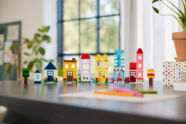 Barn kan følge de enkle instruksjonene og bygge seks ulike modeller i forskjellige høyder og former. De kan fortsette den kreative moroa ved å legge til ekstra klosser for å gjøre husene høyere, og bytte ut dører, vinduer, tak, hager og mer for å endre utseendet på husene. Det følger med åtte ideer som inspirerer barn til å bygge videre på de kreative modellene. De kan skalere opp moroa ved å bygge et ekstra stort LEGO hus med masser av klosser og deler fra settet. Det medfølger også instruksjoner i LEGO Builder appen, som lar barn forstørre og rotere modeller, og spore fremgangen.