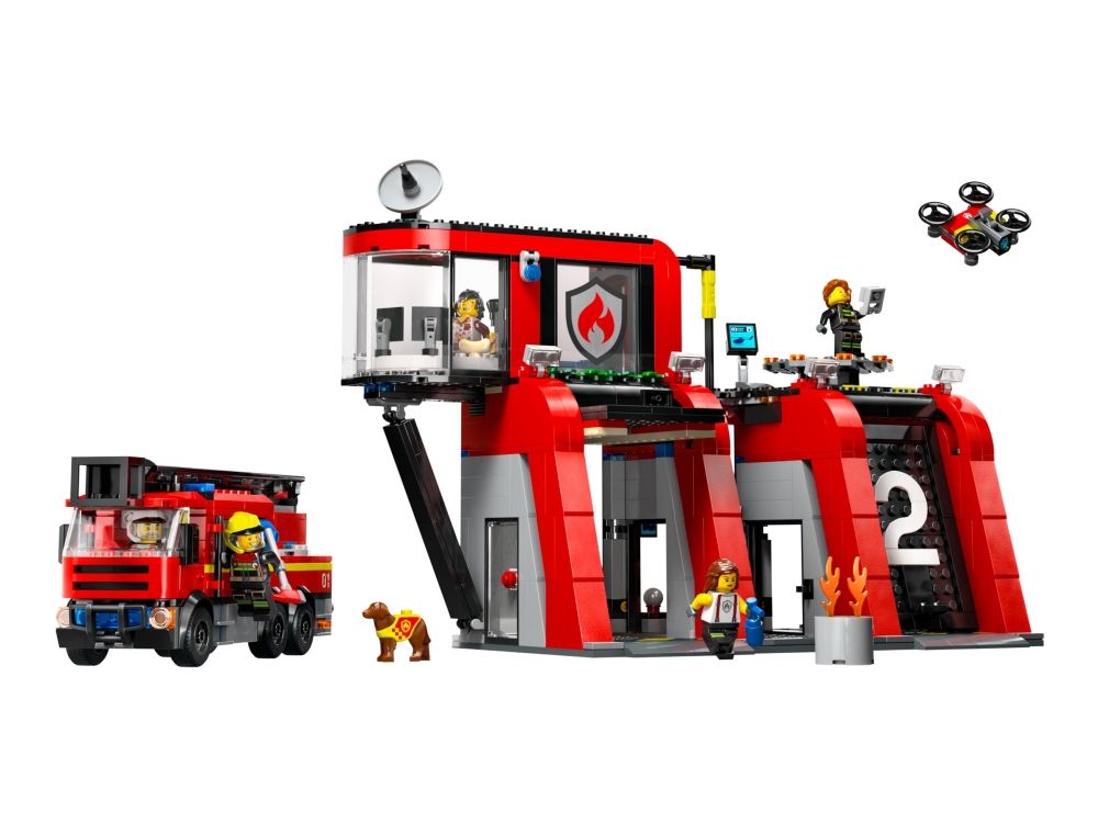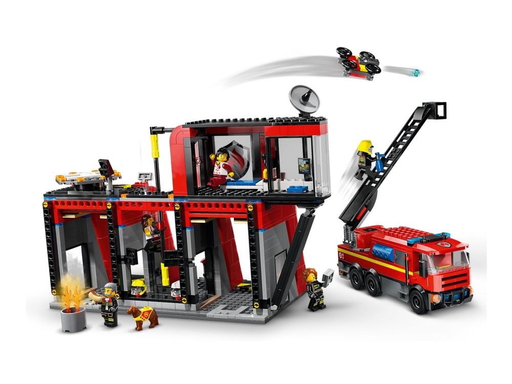 Brannstasjon med brannbil for barn fra seks år – LEGO® City lekesett med en moderne brannstasjon med kontrollsenter og lekebrannbil som barn kan bruke i actionfylte redningsoppdrag