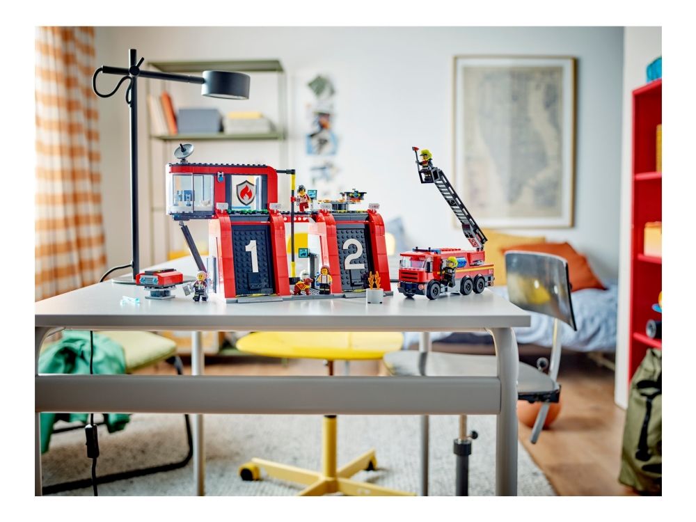 Gøyale funksjoner for LEGO® brannkonstabler – inkluderer et kontrollrom, hybelkjøkken, seng og brannstang til brannkonstabel-minifigurene. Settet inneholder også brannbil med slange, modulstige og brannslukkertilbehør