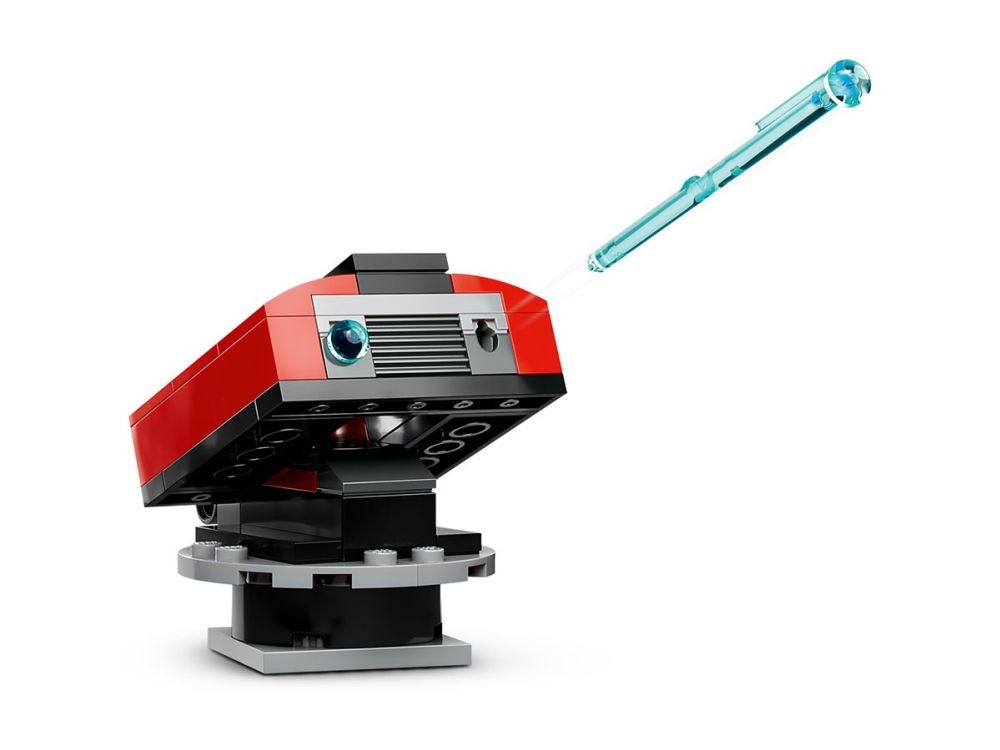 Hva inneholder esken? Alt barn trenger for å bygge en lekebrannstasjon med helipad, drone, brannbil, fem brannkonstabel-minifigurer og en brannhund-figur