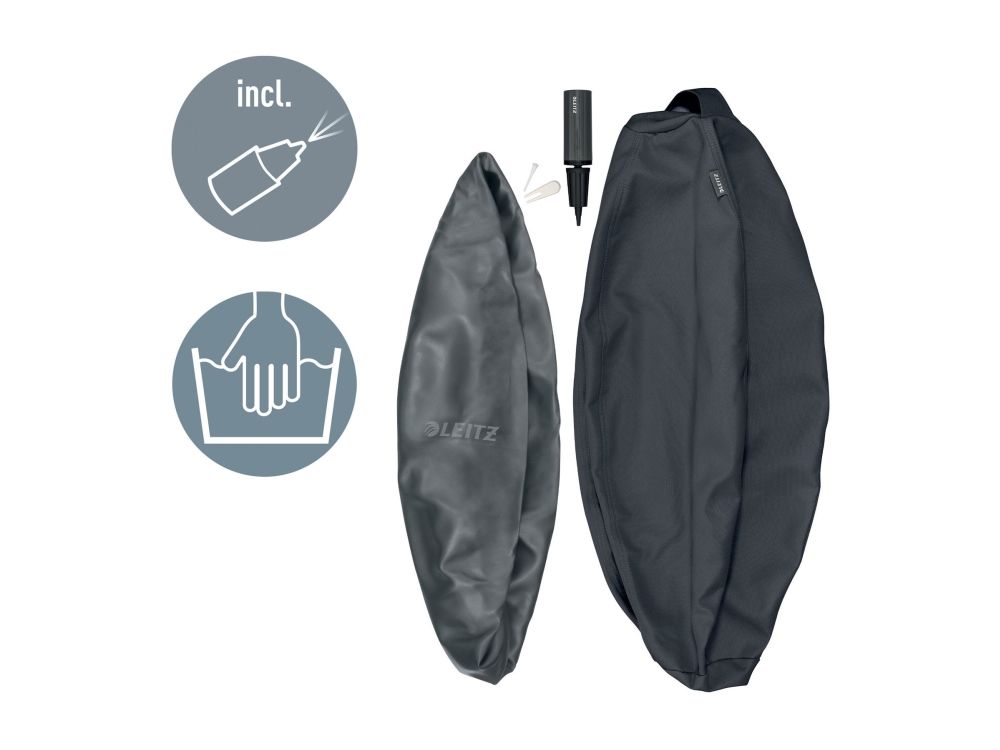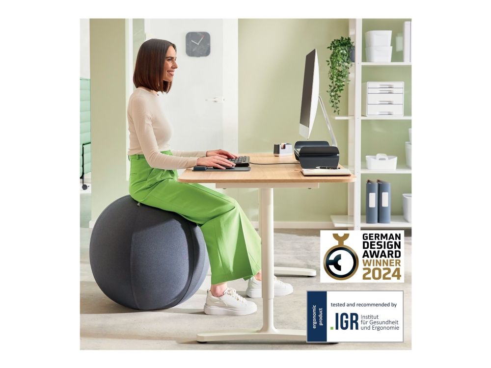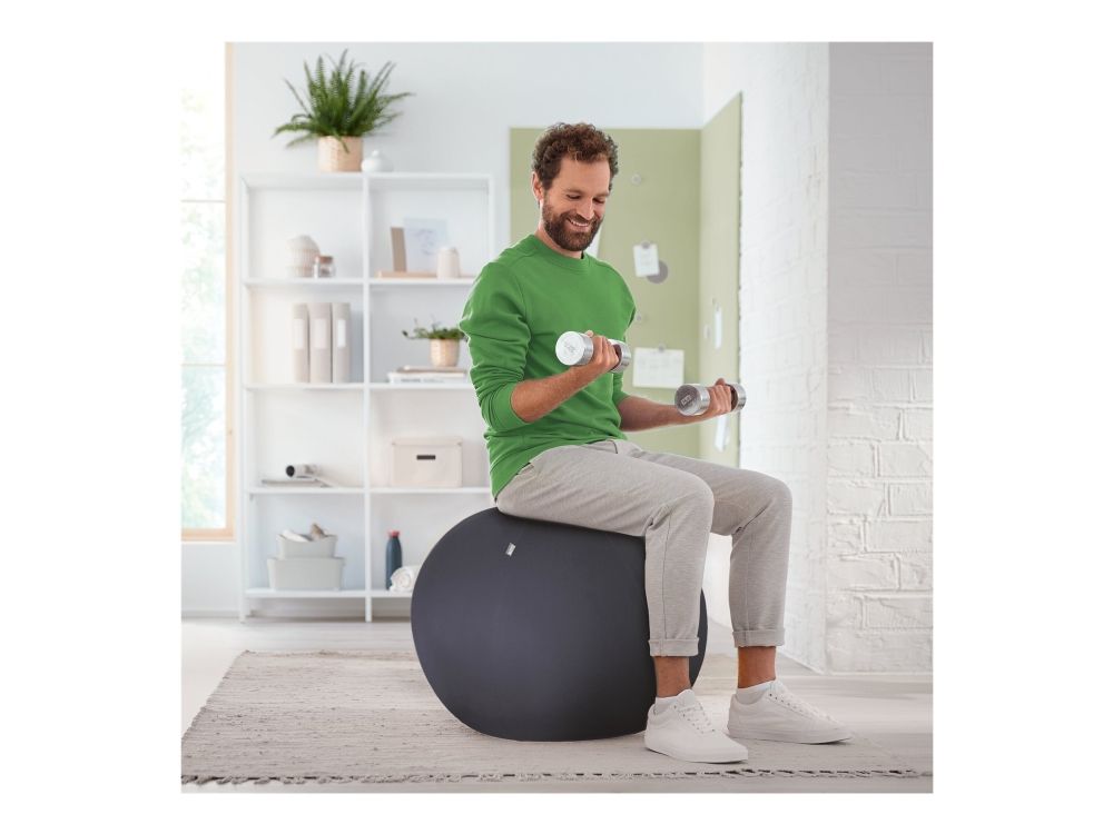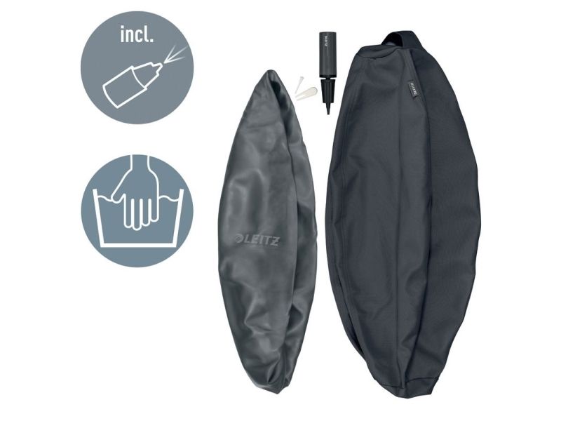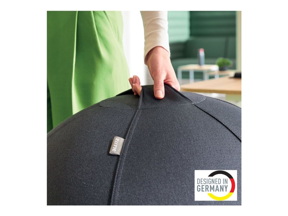 The Leitz Active Sitting Ball with stopper function encourages back and core muscle movement to improve posture and relieve back pain. Ideal for use as an additional sitting solution to keep you active while you work. IGR and TÜV certified. The 75 cm diameter makes this sitting ball chair ideal for those between 181 and 200 cm in height. The safety stopper function prevents the ball from rolling away when standing up and secure for storage. With it's minimalist design, this stylish sitting ball chair has positive impact on wellbeing by effortlessly creating the perfect active working set-up. Alternate every 30 minutes between the ball and a chair and ensure correct inflation according to the manual.