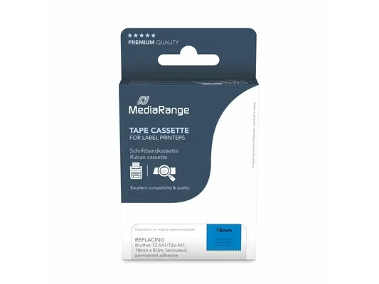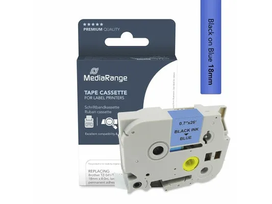 MediaRange Label Tape Cartridge, Replacing Brother TZ-541/TZe-541, 18mm, 8m, Laminated and Permanent Adhesive, Black on Blue