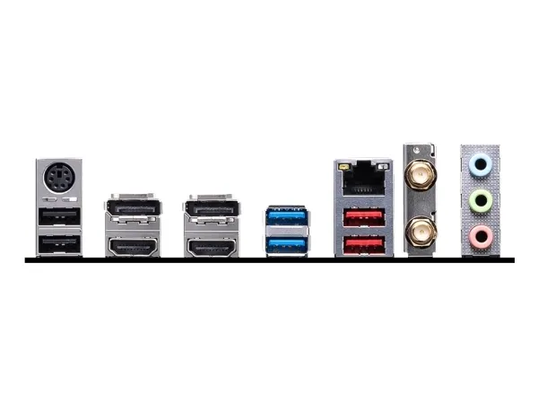 1 x HDMI 1 x DisplayPort 2 x USB 2.0 2 x USB 3.2 Gen 1 2 x USB 3.2 Gen 2 1 x LAN (2.5Gigabit Ethernet) 2 x antenne 1 x lydutlinje - minijakk 1 x mikrofon - minijakk 1 x lydutlinje - minijakk 1 x PS/2-tastatur / -mus