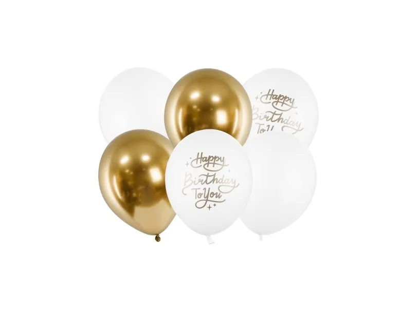 PartyDeco SB14P-305-000-6, Toy balloon, Latex, Gull, Hvit, Bursdag, Oval, 30 cm