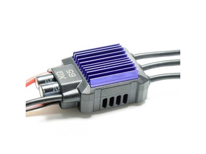 Brushless regulator XQ+ 65 til flymodeller 32 bit mikroprocessor Ekstremt fintfølende reguleringsadfærd Udsøgte, førsteklasses MOSFET-transistorer Kraftig, integreret BEC modtagerstrømforsyning Til alle gængse brushless-motorer (udvendig rotormotor eller indvendig rotormotor) 1000-dobbelt gennemprøvet kvalitetstilbehør (anbefaling) Programmerings boks, # 15966 Bluetooth-modul ESC, # 15932 Regulatoren er tilslutningsklart med 3 guldkontakter (motortilslutning) og XT stik til batteritilslutning. Kørsel er jævn for alle gængse masse af udenløbs- og indenløbsmotorer. Driften er også helt ukritisk i delbelastningsområdet.