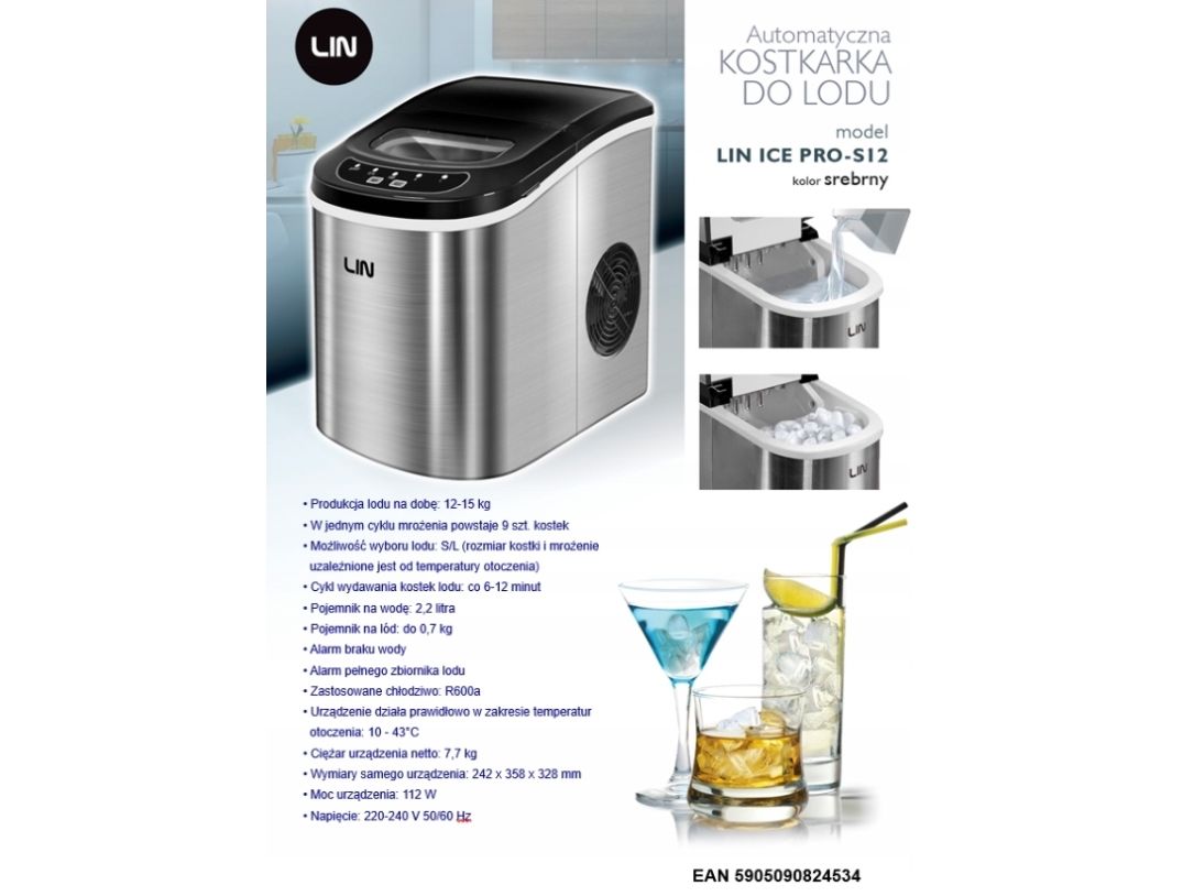 Ismaskin til isbiter Lin ICE PRO-S12 sølv