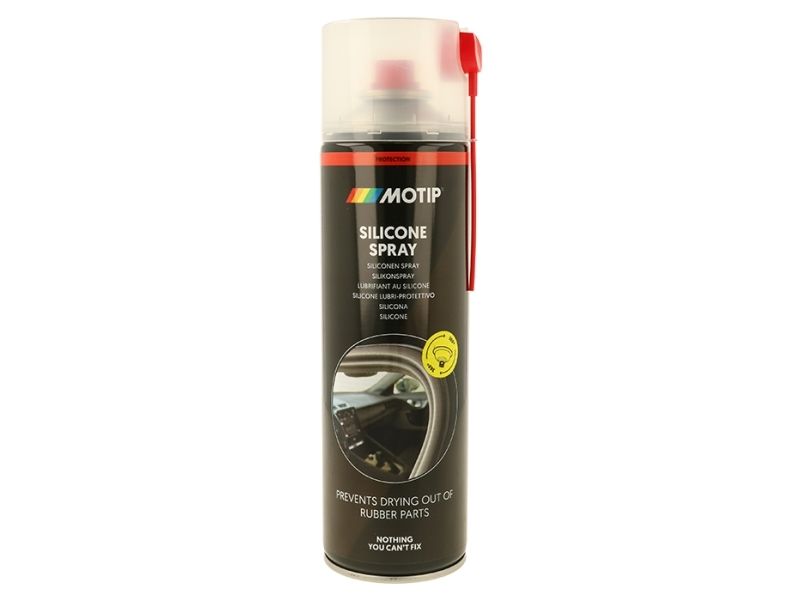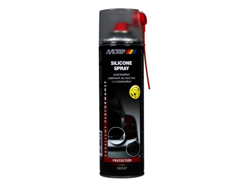 Motip Silikonespray 500ml.Silikonespray til at smøre og besytte plast- eller gummidele. Silikonespray er vandafvisende, pH-neutral og modstandsdygtig over for vejrpåvirkning og svage syre og baser. Silikonespray forhindrer frysning og udtørring af gummidele og knagen og knirken fra plastdele. Silikonespray gar egenstående mekaniske og termisk stabilitet. Motip silikonespray har en kontrolleret strålesprøjte og er modstandsdygtig overfor temperaturer på -50oC og op til +200