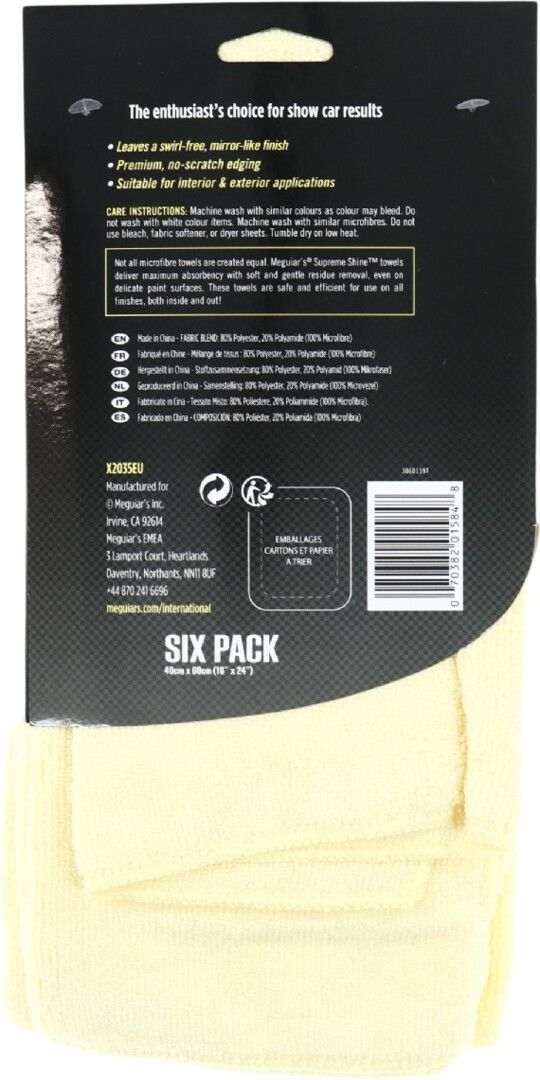 Meguiar's Supreme Shine mikrofiberkluter - 6-pakning