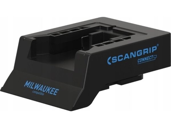 The SCANGRIP CONNECTORS are approved by TÜV Rheinland. Each CONNECTOR is sold under separate item numbers and individually designed to fit each power tool brand.SCANGRIP Milwaukee Connector. Type: Connection module, Product colour: Black, Compatibility: MILWAUKEE 18 V/20 V. Weight: 110 g, Length: 110.1 mm, Width: 76.1 mm. Quantity per pack: 1 pc(s), Package width: 43 mm, Package height: 113 mm. Products per master (outer) case: 48 pc(s)