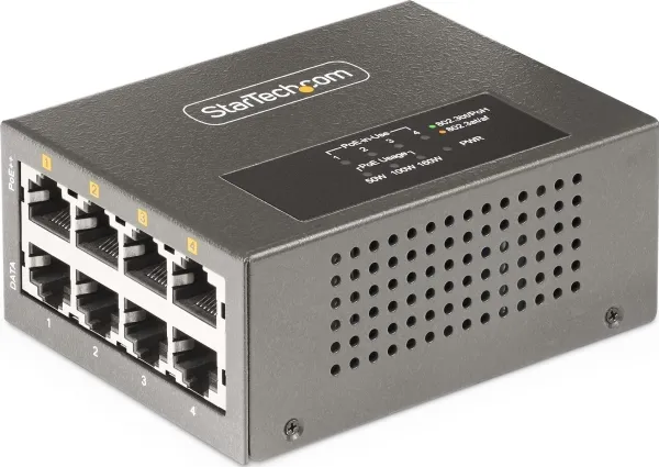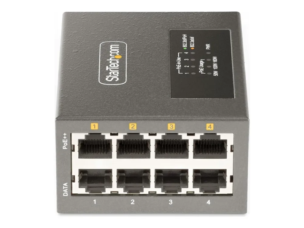 StarTech 4-Port Multi-Gigabit PoE++ Injector, 5/2.5G Ethernet (NBASE-T), PoE/PoE+/PoE++ (802.3af/802.3at/802.3bt), 160Watts Power Budget, Wall/DIN Rail Mountable - Unmanaged, For IP Cameras/Wireless APs/POSs (AS445C-POE-INJECTOR) - Strøminjektor (DIN-skinnemonterbar / vegg) - 160 watt - utgangskontakter: 4 - svart - TAA-samsvar