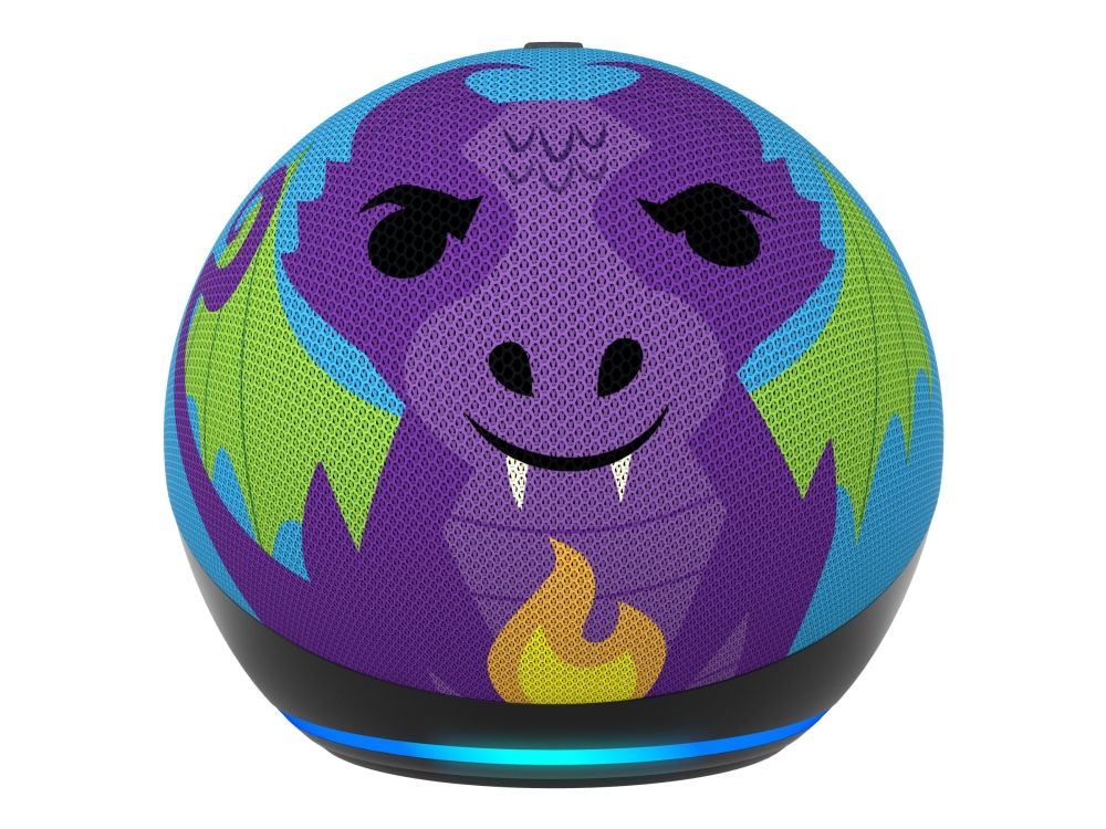 Meet Echo Dot Kids - Amazon's popular and cutest smart speaker with Alexa. The fun design features an improved speaker, delivering clear vocals and vibrant sound. Kids can ask Alexa for homework help, to play music, read bedtime stories, and more.