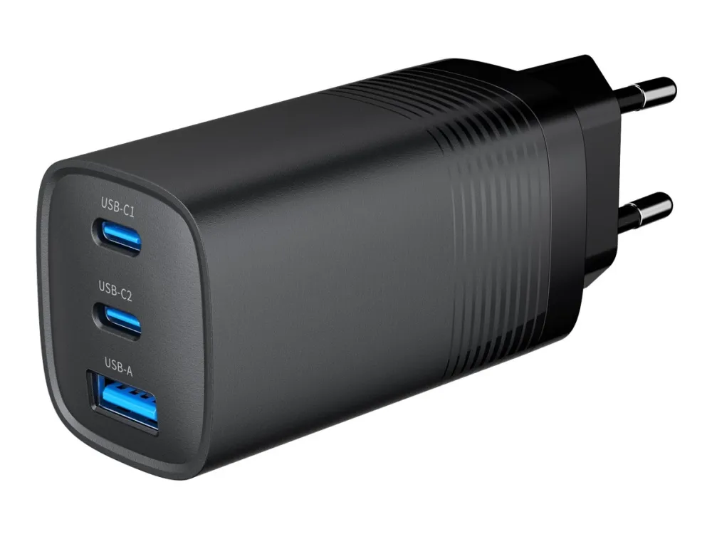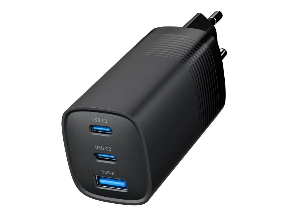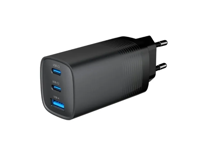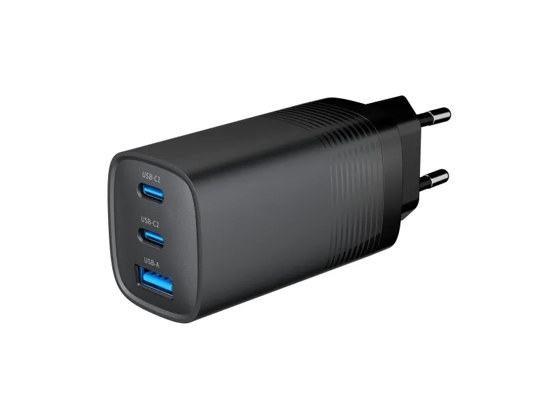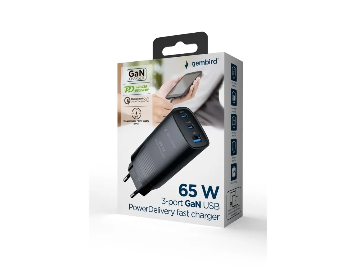 Gembird - Strømadapter - 65 watt - 4.8 A - PD, QC 3.0 - 3 utgangskontakter (USB, USB-C) - svart