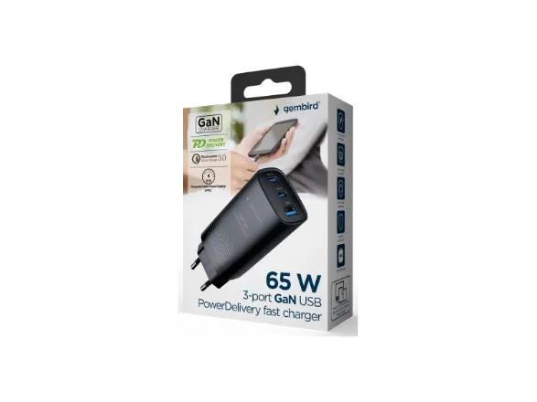 Discover a reliable power solution for your mobile and computing devices with the Gembird power adapter. Designed to cater to the needs of both cellular phones and laptops, this adapter is a versatile accessory for your technology collection. It incorporates Quick Charge 3.0, GaN Technology, and PowerDelivery Technology to ensure your devices charge efficiently, minimizing downtime and keeping you connected. Safety is paramount, and with built-in protections against overcharging, overheating, overvoltage, and short circuits, you can charge with confidence knowing your devices are safeguarded. The adapter features three output connectors, including 24-pin USB-C and 4-pin USB Type-A, offering flexible charging options for a variety of devices. With a robust 65 W power output, it's capable of handling demanding charging scenarios, ensuring your devices are always powered and ready for use. Embrace the convenience and reliability of the Gembird power adapter, your comprehensive charging solution.