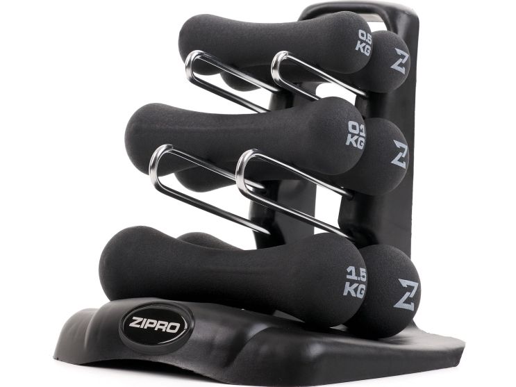 ZIPRO manualsett er designet for allsidig trening av overkroppen. Mangfoldet av manualvekter (0,5 kg, 1 kg, 1,5 kg) tillater tilpasning av treningsintensitet til individuelle behov. I tillegg gjør det praktiske stativet det enkelt å oppbevare manualene, og sikrer orden og enkel tilgang.